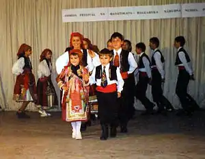 Музика банатських болгар класифікується як окрема галузь болгарської народної музики, з кількома словесними та музичними особливостями. Їхня музика зазнала румунського, сербського, угорського впливу, а болгарські колядки були замінені піснями міського типу. Римський католицизм справив значний вплив, виключаючи певні типи пісень і вимагаючи замінити їх іншими.[2] Крім того, банатські болгари зберегли багато болгарських свят, але також взяли деякі інші від сусідніх народів.[3] Одне з найпопулярніших свят називається Faršángji (від угор. Farsang — «М'ясопуст»), або карнавал. Банатські болгари також значною мірою запозичили танці сусідніх народів, наприклад, угорський чардаш.