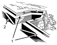 - Невисокий земляний вал або канава, що захищає залізничні колії від стікання дощової води.