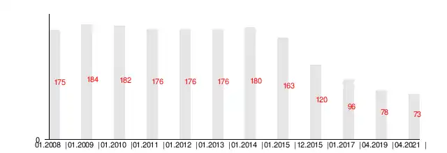 Спостерігається стійка тенденція до закриття відділень банків: наприкінці 2015 року кількість відділень сягнула 12 тисяч, а вже у грудні 2017 року працювало лише 9,5 відділень банків. Станом на березень 2019 року мережа банківських установ складається з більш ніж 8400 відділень, більшість з яких належала державним банкам[29].