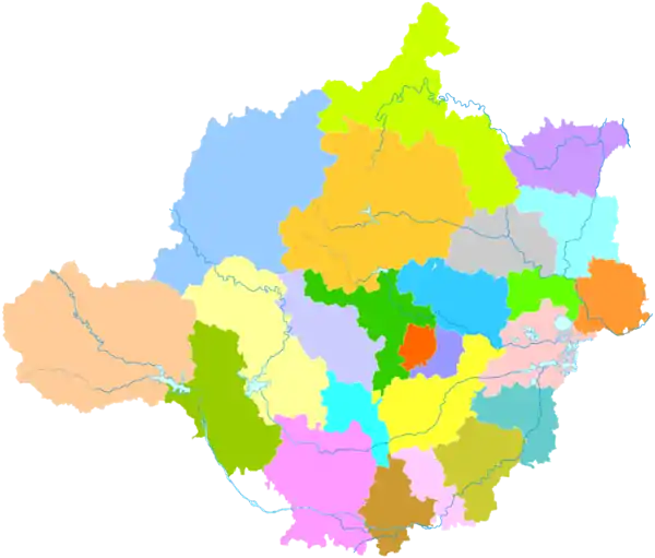 | Subdistricts | Towns | Townships | Ethnic townships | Residential communities (居委会) | Villages (村委会) | ||||||||
