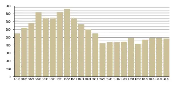 Динаміка населення (base Cassini de l'EHESS pour les nombres retenus jusque 1962[3], base Insee à partir de 1968 (population sans doubles comptes puis population municipale à partir de 2006)[4] · [5] ):