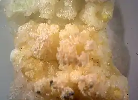 Зустрічається у вигляді кірочок з сіркою і криптогалітом на поверхні землі біля вугільних пластів, які горять, у вугільних копальнях Барари (Індія).