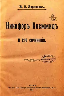 - «Никифор Влеммід і його богословські твори» (Київ, 1909)