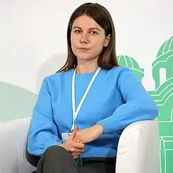 ![]() Народна депутатка Марина Бардіна під час конференції, 2020 рік | |