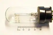 Конструкція — заповнений воднем скляний балон, всередині якого вміщено тонкий залізний або вольфрамовий дріт.