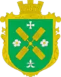 На зеленому полі золоті крила вітряка в косий хрест, супроводжувані в главі срібним уширеним хрестом, по сторонам — двома срібними квітками із золотими серединками, внизу — срібною рослиною. Щит вписаний в золотий декоративний картуш і увінчаний золотою сільською короною.
