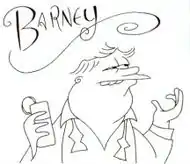 У серіалі Барні з'явився в найпершому епізоді: він працював переодягненим Санта-Клаусом в універмазі — і дав Гомеру пораду про те, як вигравати на собачих перегонах. В описі першого сезону згадується, що за планами сценаристів, Барні мав бути сусідом Гомера, проте цю сюжетну лінію змінили.