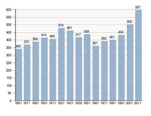 Станом на 31 грудня 2014 року в муніципалітеті офіційно проживало 70 іноземців з 13 країн, серед них 29 громадян країн Євросоюзу та 4 громадяни України.[4]