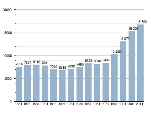 Станом на 31 грудня 2014 року в муніципалітеті офіційно проживало 568 іноземців з 34 країн, серед них 161 громадянин країн Євросоюзу та 181 громадянин України.[4]