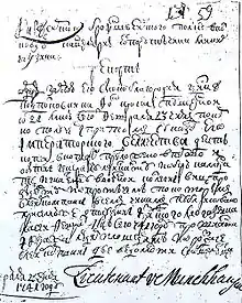 ![]() Мюнхгаузен (у мундирі кірасира). Художник Г.Брюкнер, 1752 | |