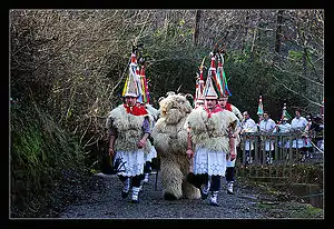 Прикладом суто місцевих традицій є карнавал у двох наваррських селищах — Ітурен і Субієта[20], що по суті є Святом зустрічі весни. Цей фестиваль має суто локальний характер (хоча останнім часом через надзвичайну популярність набув поширення і в інших муніципіях Наварри) і, безперечно, походить з дохристиянських часів. Його учасники — хоалдунаки (баск. joaldunak, від joare «дзвоник» і присвійний суфікс -dun, що означає «носій (чогось)»)[21], щоб привітати настання зеленої пори, вбираються у чудернацьке вбрання — білі сукні, шкіри овець, гостроконечні ковпаки з пір'ям півнів і обов'язковим дзвоником для худоби на вершечку[22]. Махаючи мітлами, зробленими з конячих хвостів, і баламкаючи коров'ячими дзвониками у такт ході, вони сповіщають про прихід очікуваної теплої пори року.