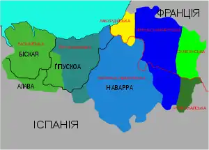 Вже за Середньовіччя південні баскські землі опинилися в сфері впливу Кастилії, північні — Франції. Перші значні спроби Іспанської корони інкорпорувати Алаву і Гіпускоа датуються 1200 роком, Біскайю — 1379 роком.