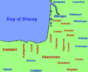 Пращури басків — племена васконів, вардулів, каристіїв тощо, щодо ступіню споріденості яких з іберами — населенням Піренейського півострова у 1-му тис. до н. е. — серед дослідників немає єдності. В доісторичні часи вони, згідно з деякими припущеннями, як і аквитанці, заселяли північніші терени (аж до центральної Франції), але були посунуті на південь кельтами[7]. Від давнього населення Країни Басків залізної доби лишились численні менгіри.