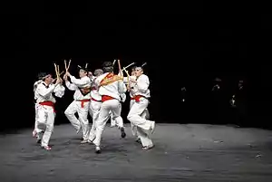 Баски здавна славились своїми танцями — переважно чоловічими або з домінуванням чоловіків, багато з яких, імовірно, походять від давніх бойових танців і, зазвичай, є колективними, навіть масовими, з численними перестроюваннями, стрибками і підстрибами, різноманітними гімнастичними фігурами, з імітацією сутичок двох ворогуючих сторін[15] (наприклад, еспата данцаріс баск. espata dantzaris — танці з мечами). Танцюристи виступають під акомпанемент вигуків, своїх і глядачів, традиційної флейти і барабана.