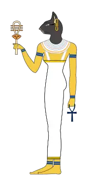 Баст, Ба́стет (єг. b’.s’. t’, bs’. t. t[що це?]), Бубасті́да (грец. Bubastis) — єгипетська богиня, уособлення світла (сонячного або місячного). Дочка Ісіди Осіріса. Центром культу Баст було місто Бубастіс, де відбувались урочистості на її честь (за Геродотом). Священною твариною Бастет була кішка, тому зображували богиню жінкою з головою кішки або в товаристві кішки з сонячним чи місячним колом. Поблизу Бубастіса знайдено масштабний котячий цвинтар, пов'язаний з культом богині.