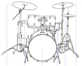 ![]() бас-барабан | ![]() педаль до бас-барабану | ![]() Установка з двома бас-бочками Саймона Філіпса |