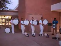 Існують також бас-барабани з визначеною звуковистовністю (т. зв. marching bass drum). Такі барабани виконують не тільки ритмічну функцію, але й гармонічну. Використовують як правило 5 барабанів, кожний з яких настроєний на певну висоту звуку. Кожен виконавець керує одним бас-барабаном.