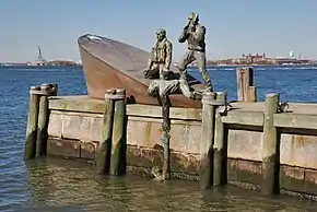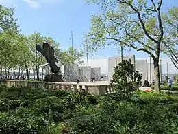 Зліва направо:Сфера, Меморіал Східного узбережжя, Меморіал американським торгівельним морякам, Меморіал ветеранам Корейської війни, статуя Джованні да Верраццано. | ||||||||||