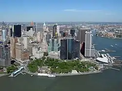 | Вигляд Батареї з пташиного лету: ліворуч видно причал А, трохи лівіше від центру — Касл-Клінтон, праворуч — поромний термінал. | ||||