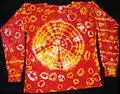 Потім тканину розв'язують, промивають водою. При цьому можна отримати різні цікаві візерунки: під нитками, якими була зв'язана тканина барвники не проходять а на інших частинах тканина рівномірно зафарбовується.
