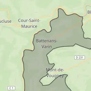 Муніципалітет розташований на відстані[2] близько 370 км на південний схід від Парижа, 55 км на схід від Безансона.