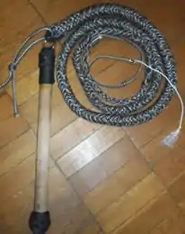 Інший варіант складався з переплетених шкіряних смуг і дротів, на кінці батога вони розходилися. Ще один варіант, відомий як «великий батіг», складався з держака приблизно 60 см довжиною, до якого кріпився плоский ремінь, удвічі довше руків'я, що закінчувався мідним кільцем, до якого кріпився ще один ремінь шириною 5 см, довжиною 60 см, дедалі тонший до кінця. Ремені виварювали в молоці й висушували на сонці для надання цупкості.