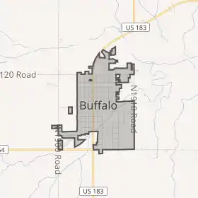 Баффало розташоване за координатами 36°50′07″ пн. ш. 99°37′40″ зх. д. (36.835223, -99.627744)[3]. За даними Бюро перепису населення США в 2010 році місто мало площу 2,08 км², уся площа — суходіл. В 2017 році площа становила[4] 2,93 км², уся площа — суходіл.