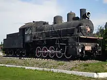 Паровоз серії Ем в Бахмачі, встановлений в 1988 році