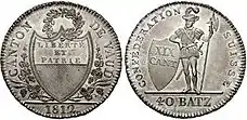 У XIX столітті, після введення десяткової системи у Швейцарії , 1 швейцарський франк = 10 баценов = 100 раппенів.