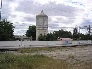 Поруч із залізничною станцією селища Поштового височить двоповерхова водонапірна вежа в східному стилі (орієнталізм)[7], інженерна споруда місцевого водогону. Вежа знаходиться на невеличкому підвищенні, куди вода з річки Альма (протікає поруч)[8] по трубах подається в накопичуючий резервуар.