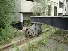 Пересування такого крана здійснюється на задній колісній парі, яка закріплена на рамі порталу. При цьому спереду підставляється вузько розташована колісна пара з тяговою балкою, яка з'єднана з тяговим гаком буксирує транспортного засобу[4].