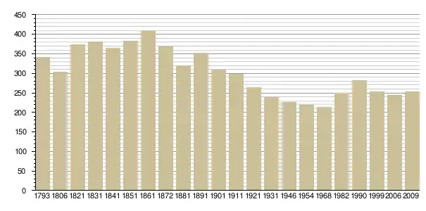 Динаміка населення (base Cassini de l'EHESS pour les nombres retenus jusque 1962[3], base Insee à partir de 1968 (population sans doubles comptes puis population municipale à partir de 2006)[4] · [5] ):