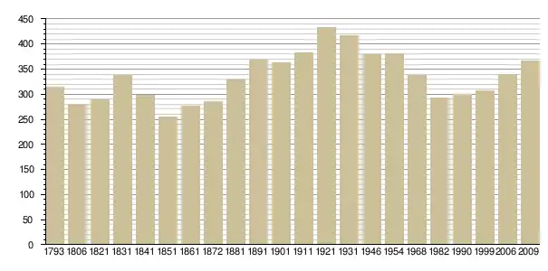 Динаміка населення (base Cassini de l'EHESS pour les nombres retenus jusque 1962[3], base Insee à partir de 1968 (population sans doubles comptes puis population municipale à partir de 2006)[4] · [5] ):