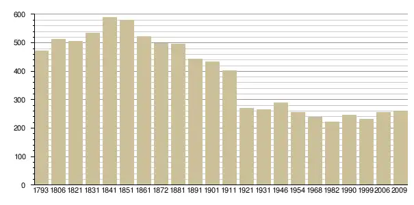 Динаміка населення (base Cassini de l'EHESS pour les nombres retenus jusque 1962[3], base Insee à partir de 1968 (population sans doubles comptes puis population municipale à partir de 2006)[4] · [5] ):