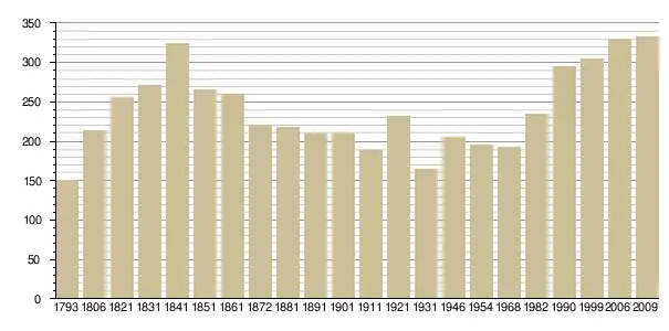 Динаміка населення (base Cassini de l'EHESS pour les nombres retenus jusque 1962[3], base Insee à partir de 1968 (population sans doubles comptes puis population municipale à partir de 2006)[4] · [5] ):