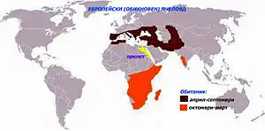 Має розірваний ареал, що включає Євразію, Північну та Південну Африку. Північно-Західна Африка від Марокко на схід до Тунісу, на південь до північної межі Сахари. У Південній Африці Капська провінція та Південна Родезія. Євразія від атлантичного узбережжя Піренейського півострова на схід до верхньої течії р. Об, західної та південно-західної межі Алтаю, Зайсану, Тарбагатаю, західної межі Сіньцзяну, Кашміру, західного Пакистану. На північ до північної Франції, Данії, північних частин Чернігівської та Тульської областей, до Рязанської та Тамбовської областей, району Ульяновська, долини Сури, гирла Ками, району Бузулука, долини Сакмари, долини Іргізу, північного узбережжя Аральського моря, північно-західної окраїни хребта Каратау, Балхашу, північно-західної окраїни Алтаю, долини верхньої Обі в районі Барнаула. На південь до Середземного моря, Палестини, Сирії, Іраку, північно-східного узбережжя Перської затоки, узбережжя Аравійського моря, південно-західного Пакистану. Поширення в межах ареалу, особливо біля північних меж, дуже нерівномірне.