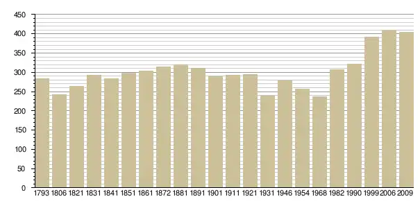 Динаміка населення (base Cassini de l'EHESS pour les nombres retenus jusque 1962[3], base Insee à partir de 1968 (population sans doubles comptes puis population municipale à partir de 2006)[4] · [5] ):