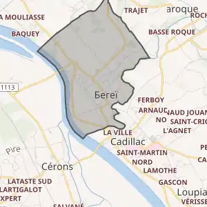 Муніципалітет розташований на відстані[2] близько 510 км на південний захід від Парижа, 30 км на південний схід від Бордо.