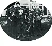 Федосій Щусь у безкозирці серед командирів-махновців.