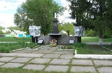 Є 2 пам'ятники загиблим радянським воїнам, розміщені на братських могилах, а також погруддя Героїв Радянського Союзу — земляків Левицького Романа Івановича та Підкопая Івана Яковича. Окрім цього, є меморіальна плита з іменами загиблих під час 2-ї Світової війни воїнів-односельчан та пам'ятник на могилі невідомого солдата. Також є пам'ятник на могилі Героя Соціалістичної Праці Калініченко Єлизавети Денисівни.