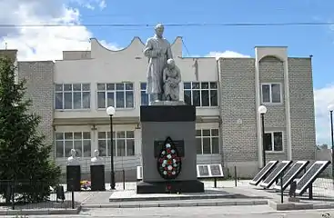 Братська могила радянським воїнам (>210 воїнів) перед новою будівлею селищної ради[11]