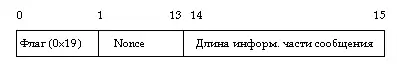 Блок CBC складається з однобайтового прапора, має значення 00011001, послідовності nonce і поля, що містить довжину інформаційної частини повідомлення.
