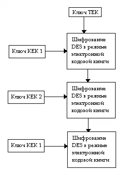 Тут KEK 1 — це перші 64 біт ключа KEK, а KEK 2 — останні 64 біт ключа KEK.