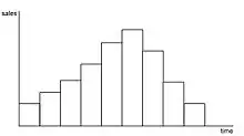 Наступний приклад продажу певного продукту з плином часу. Використання дискретно-подієвого моделювання свідчить про необхідність події, щоб змінити кількість продажів. На відміну від цього безперервне моделювання має гладкий і сталий розвиток в кількості продажів[5]. Варто відзначити, що «кількість продажів» принципово лічильно і, отже, дискретно. Безперервне моделювання продажів передбачає можливість дрібних продажів, наприклад, 1/3 від продажу. З цієї причини, безперервне моделювання продажів не моделює реальність, але, тим не менш може зробити корисні передбачення, які відповідають прогнозам дискретного моделювання для цілих чисел продажів.