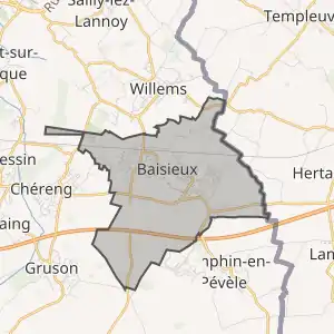Муніципалітет розташований на відстані[2] близько 210 км на північ від Парижа, 14 км на схід від Лілля.