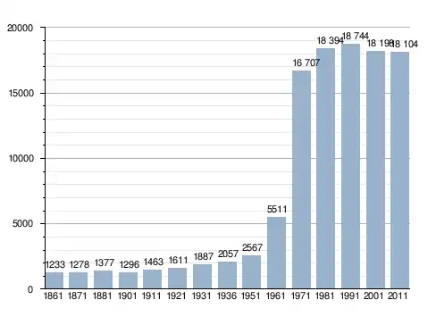 Станом на 31 грудня 2014 року в муніципалітеті офіційно проживало 936 іноземців з 48 країн, серед них 484 громадяни країн Євросоюзу та 10 громадян України.[4]