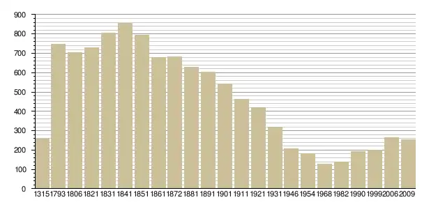 Динаміка населення (Baratier, Duby & Hildesheimer pour l’Ancien Régime ; Insee[3], EHESS pour les chiffres issus des recensements légaux ):