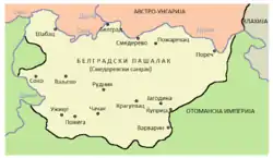 Пашалик (санджак) було розділено на 12 нахій: Белград, Смедерево, Пожаревац, Чупрія, Ягодина, Крагуєвац, Ужич, Валево, Шабаць, Рудник, Соко, Боравиц.