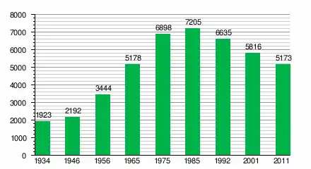 За даними перепису населення 2011 року у місті проживали 5173 особи.