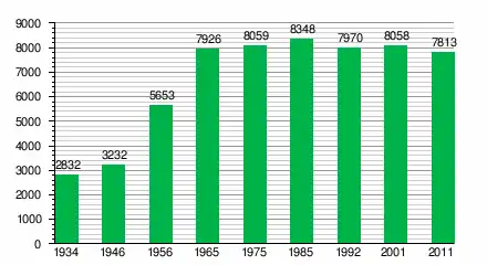 За даними перепису населення 2011 року у місті проживали 7813 осіб.